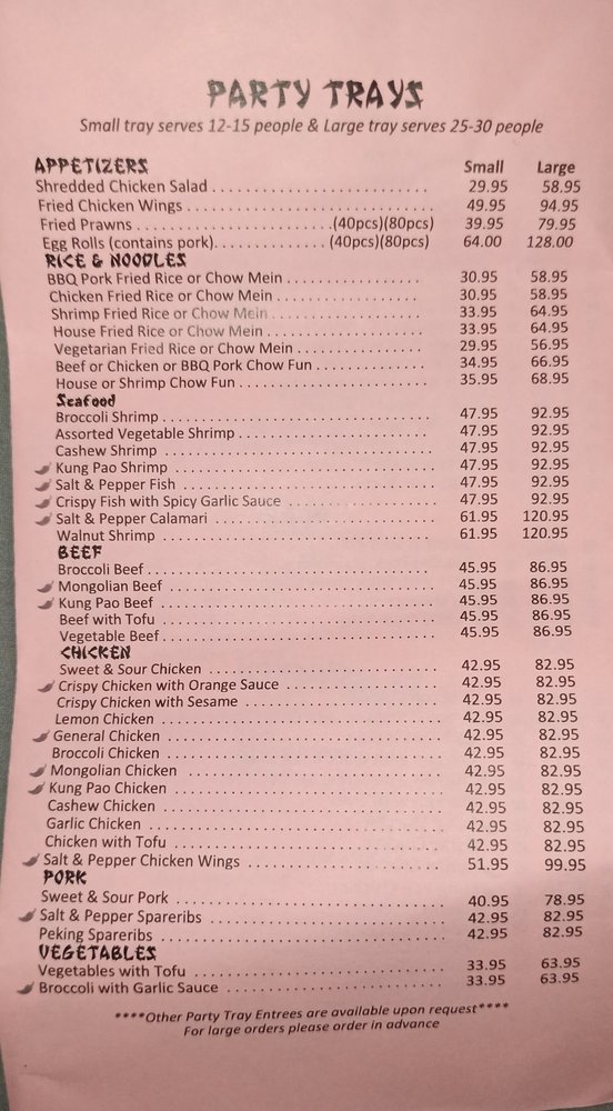 House Chow Fun Combination of BBQ pork, chicken and shrimp Large Tray: serves approx. 25 - 30 people